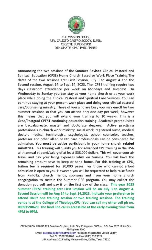 Clinical Pastoral Education at Central Philippine University Share this: Click to share on X (Opens in new window) X Click to share on Facebook (Opens in new window) Facebook Like Loading... Related